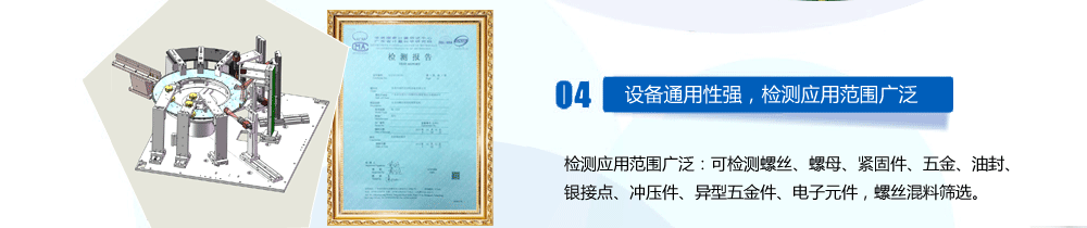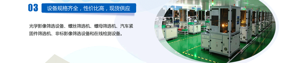 主營(yíng)產(chǎn)品:光學(xué)影像篩選機(jī),螺絲全檢設(shè)備,螺母全檢設(shè)備,自動(dòng)在線檢測(cè)設(shè)備