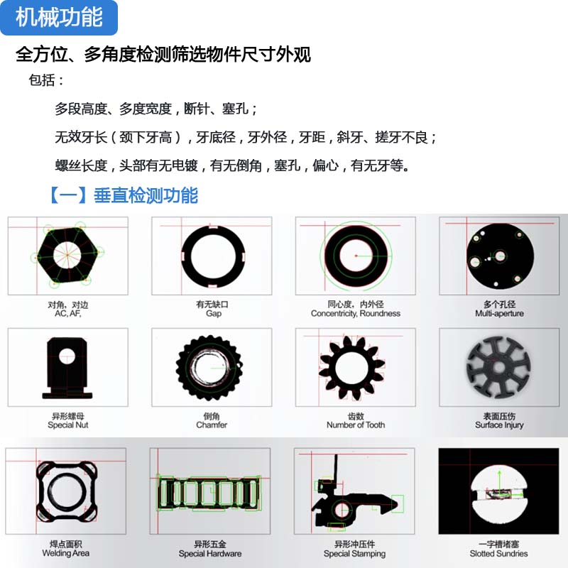 硬體配備包含振動(dòng)送料機(jī)、下料軌道、檢驗(yàn)平臺(tái)、計(jì)算機(jī)系統(tǒng)為一安全、便利,且節(jié)省人力成本的自動(dòng)化設(shè)備。分別介紹如下: