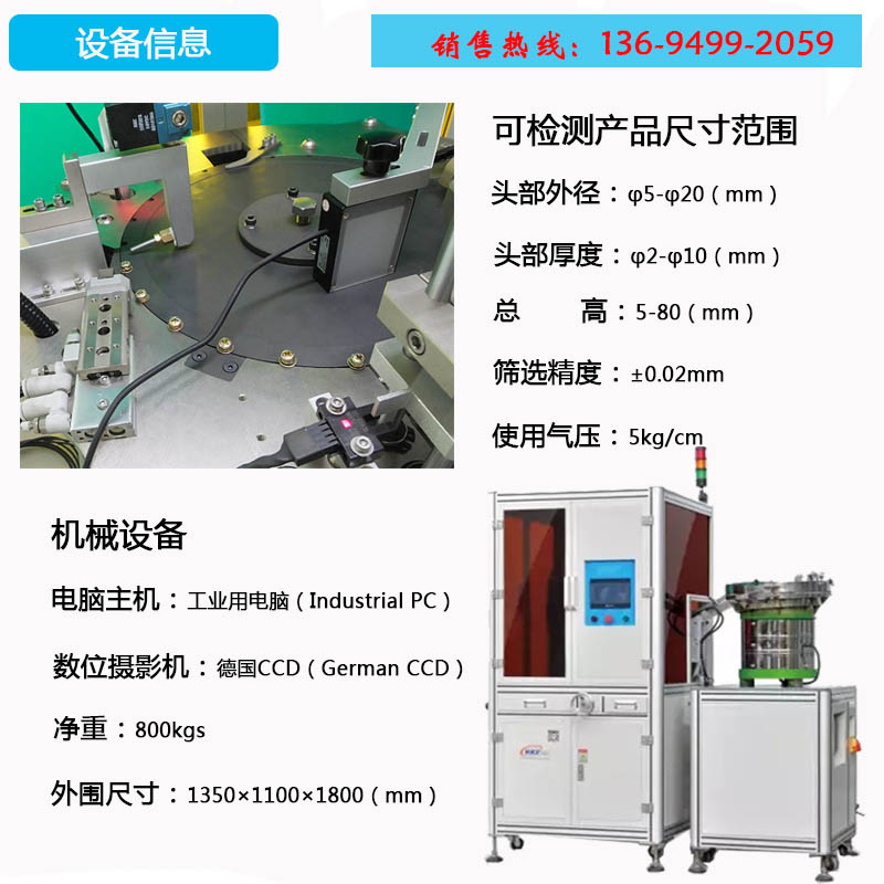 檢測產(chǎn)品外觀、長度、高度、螺牙、頭裂等。 |