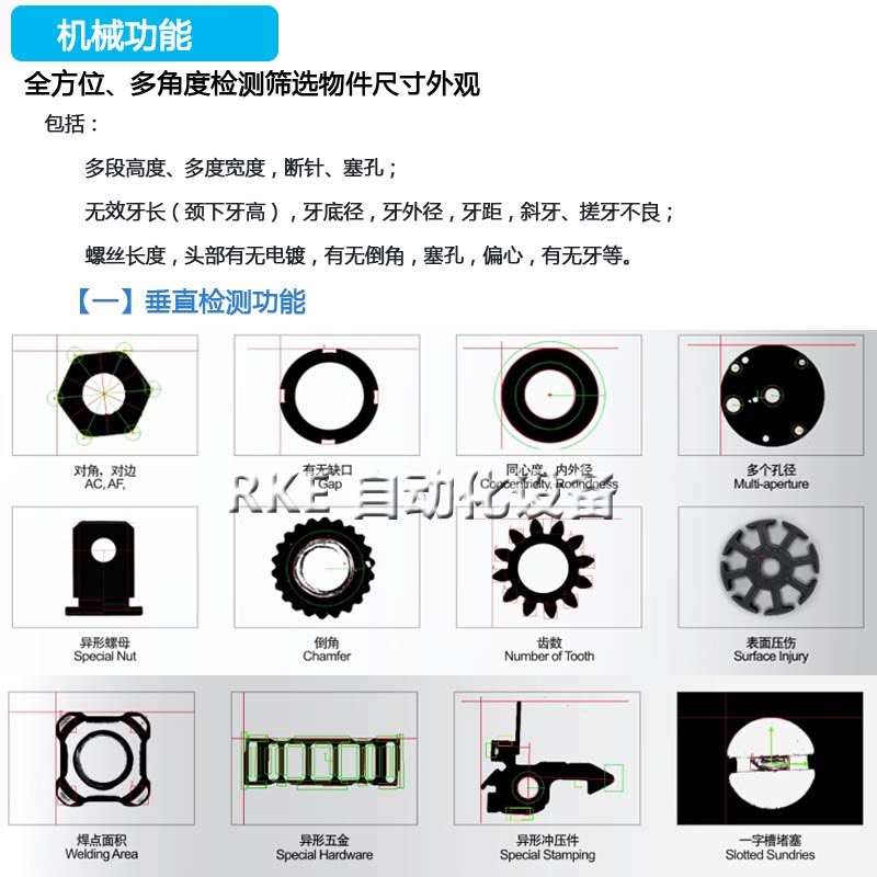 檢測產品的頭部直徑、多段高度、頭厚、牙外徑、垂直度、搓牙不良 |