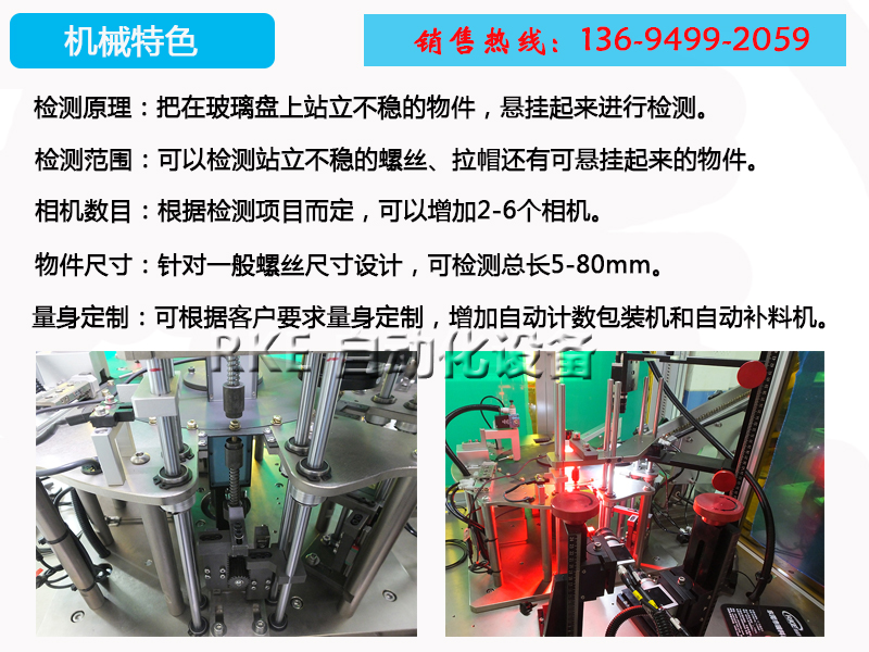 分度盤篩選設備檢測鋁制品,把在玻璃盤上站立不穩的物件,懸掛起來進行檢測。檢測范圍廣,速度快,精度高
