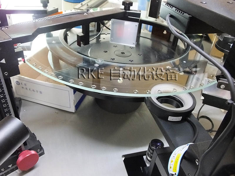 CCD視覺檢測五金環產品,利用玻璃的透光性,把物品放在玻璃盤上進行檢測,節省勞力,檢測速度快,效率高。